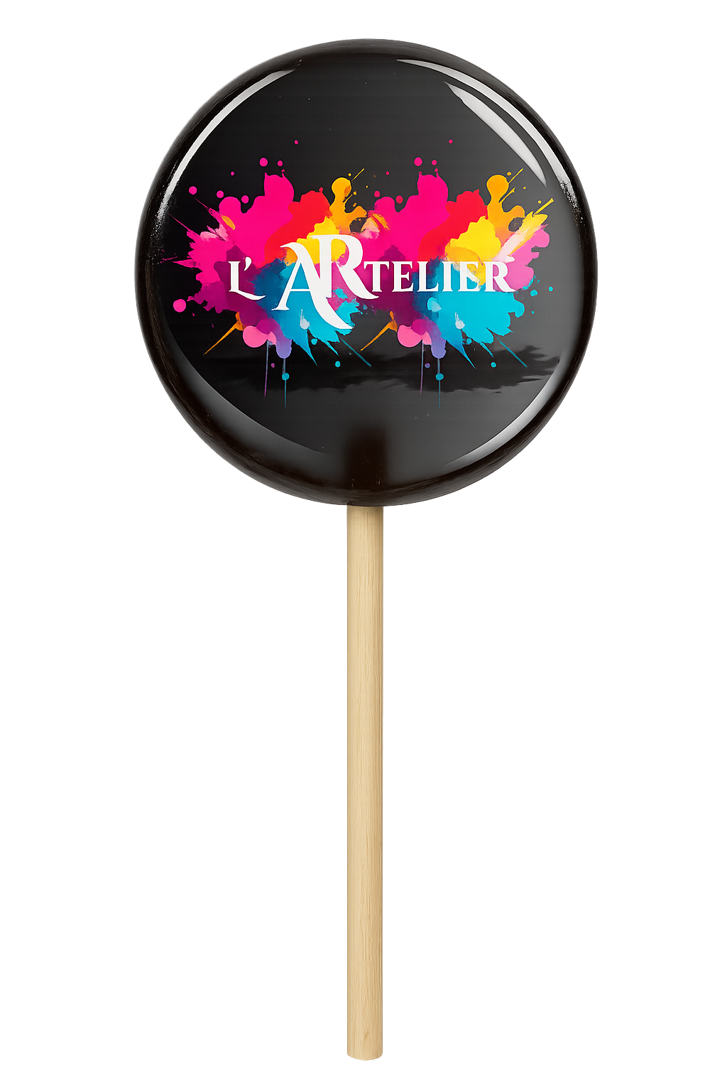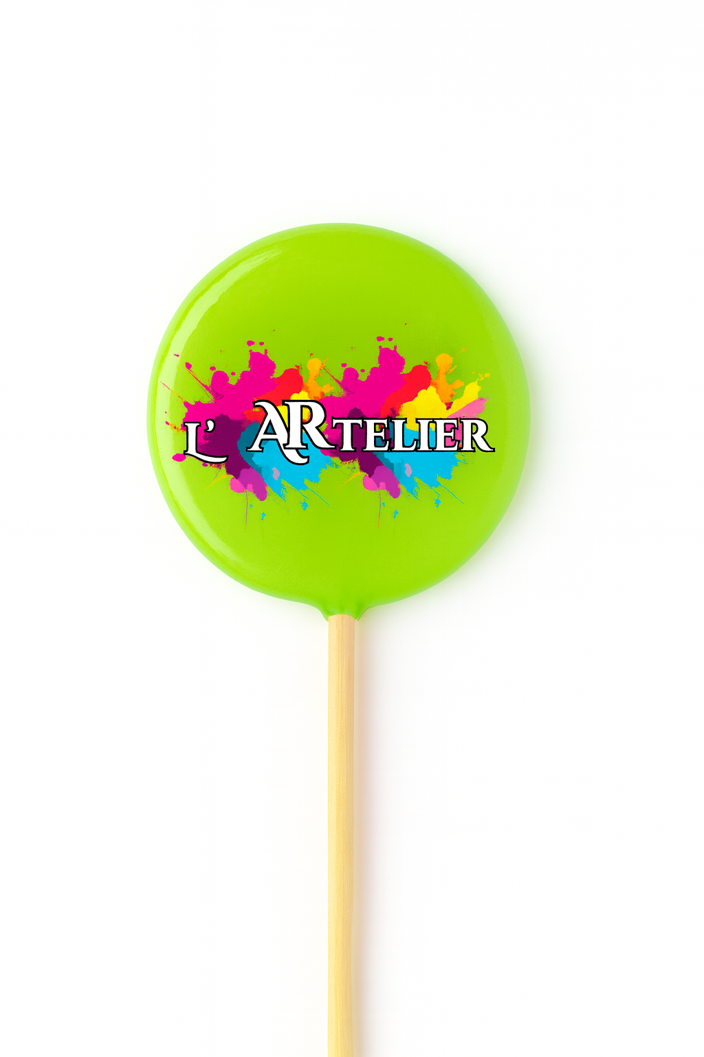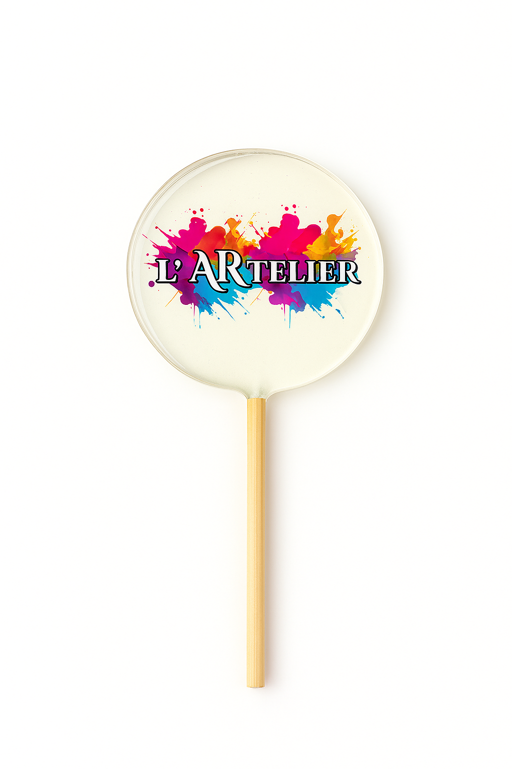 Chaque sucette est personnalisable avec votre texte et ou avec votre logo sur feuille d'azime imprimé à l'encre alimentaire.